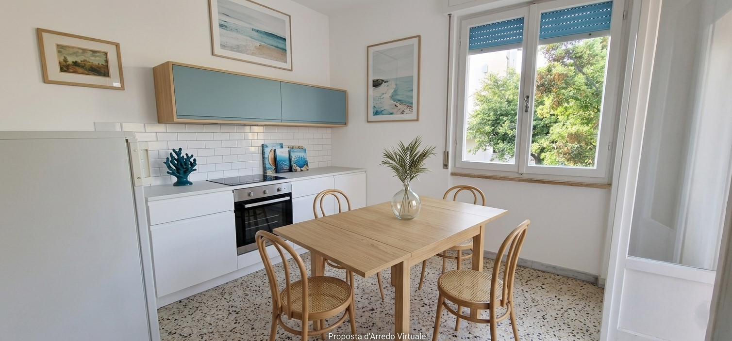 In via del Tirreno, a pochi passi effettivi dal mare , proponiamo un appartamento al primo piano che unisce la vicinanza alla spiaggia alla tranquillità di un piccolo condominio immerso nel verde.