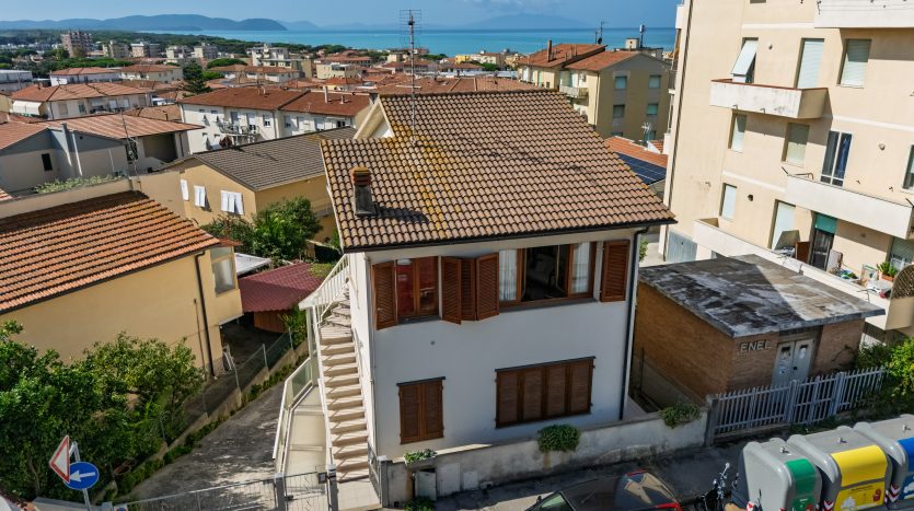 La posizione è strategica: leggermente sopraelevata per favorire la vista mare e vicinissima ai principali servizi come scuole, negozi di prima necessità come panificio, macelleria e altro. Il centro e la spiaggia sono facilmente raggiungibili in pochi minuti a piedi o in bicicletta.