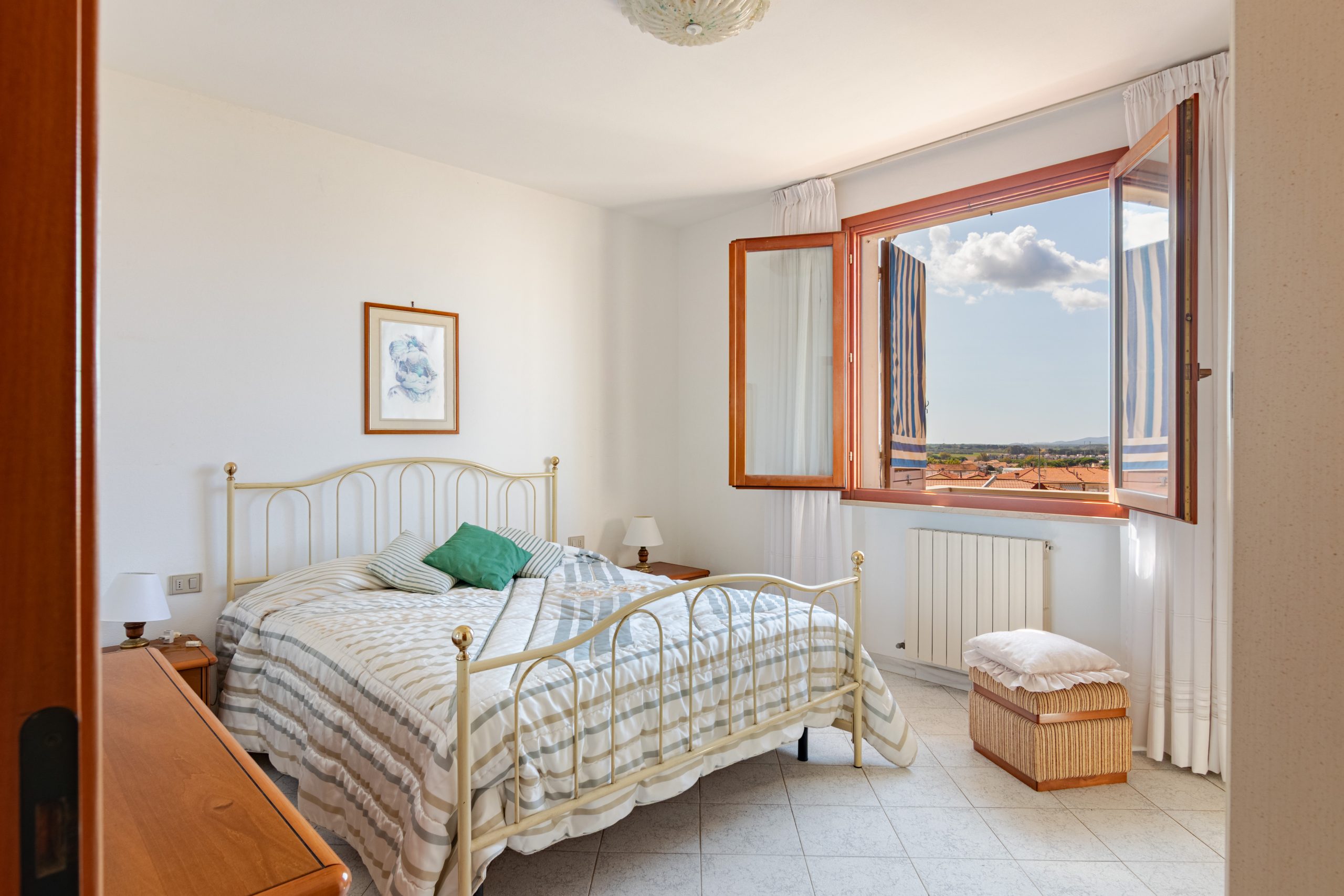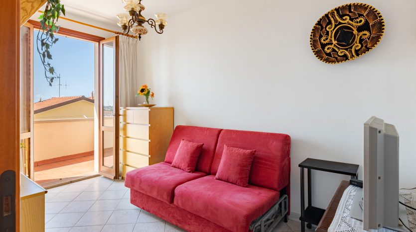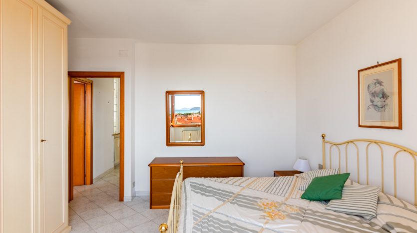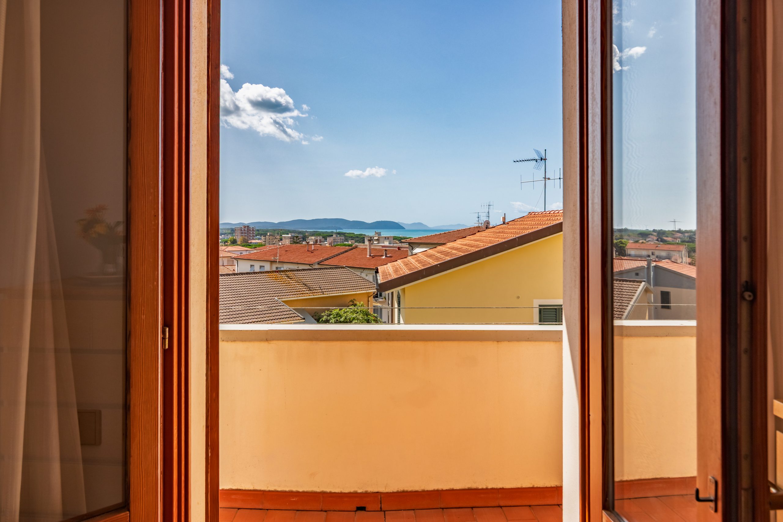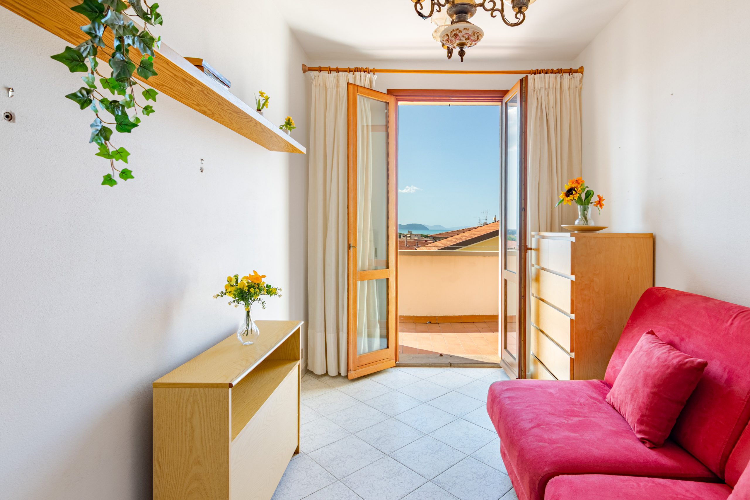 L’accesso è completamente indipendente tramite scala esterna esclusiva . Varcata la soglia, si entra in un accogliente soggiorno/zona pranzo. La cucina a vista è sapientemente disposta in un ambiente attiguo, pur rimanendo separata. La zona notte è composta da una camera matrimoniale e una cameretta singola e bagno finestrato. Entrambe le camere godono del privilegio di un piacevole scorcio vista mare. La cameretta conduce direttamente al balcone panoramico, da cui si apre la vista sul mare, sul promontorio di Populonia – Baratti, l’Isola d’Elba e le colline circostanti.